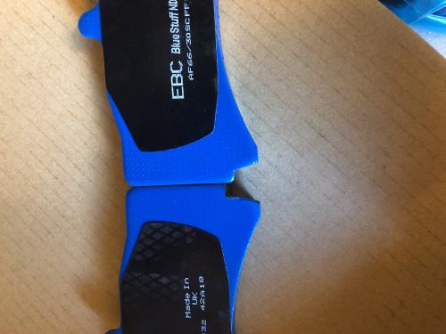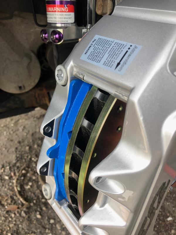 När du är nöjd och belägget sveper längst med skivans övre ytterkant så är du klar. Se till att anti-rattle clipsen / ovanför beläggen har anläggningstryck neråt så belägget fortfarande sitter stabilt och still i bromsoket. Vid behov så justera clipsen så lagom anläggningstryck erhålles.