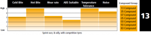 Sportigare gatbelägg för prestandabilar och tyngre bilar. Perfekt grepp upp till 900°C. Endast lämpligt för tävlingsbruk. Funkar bra till tyngre och motorstarkare bilar med lite sportigare känsla.