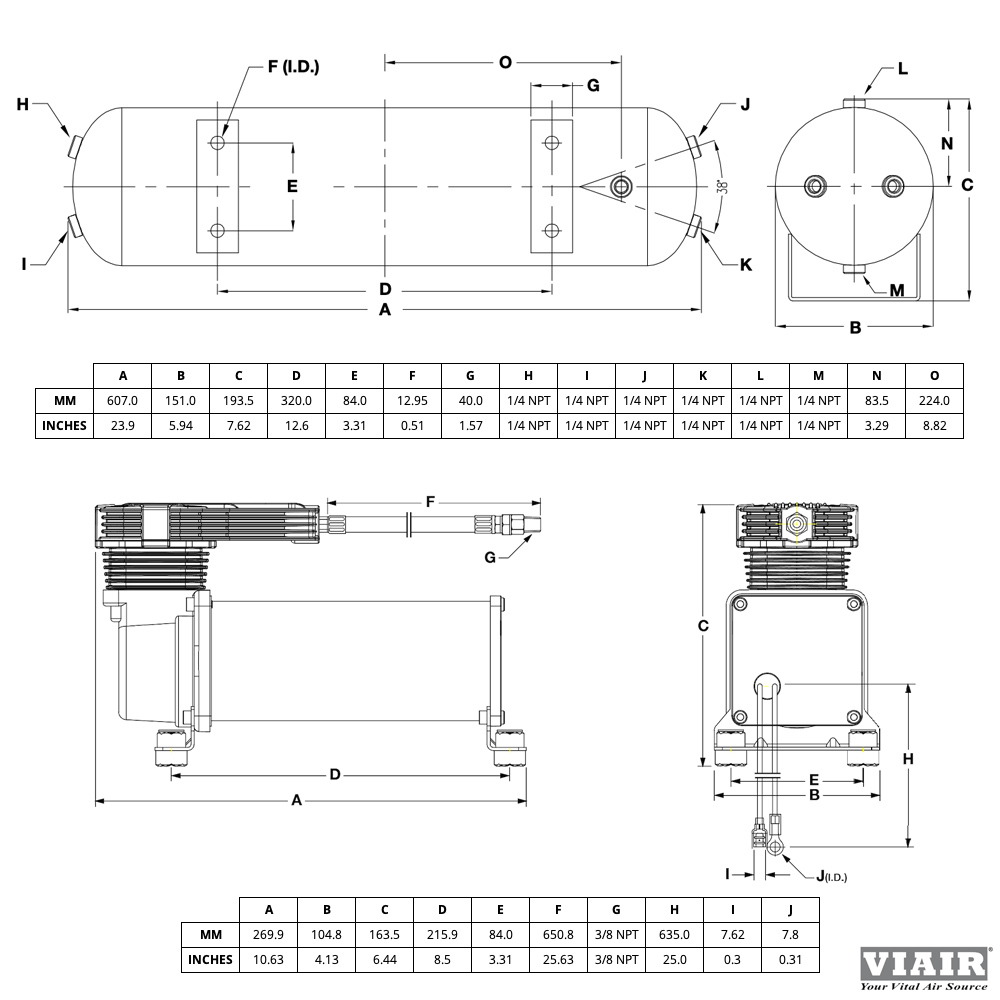 Air Jack On Board 12V Compressor Kit, 13.8 BAR / 200PSI, 2.5 gallons