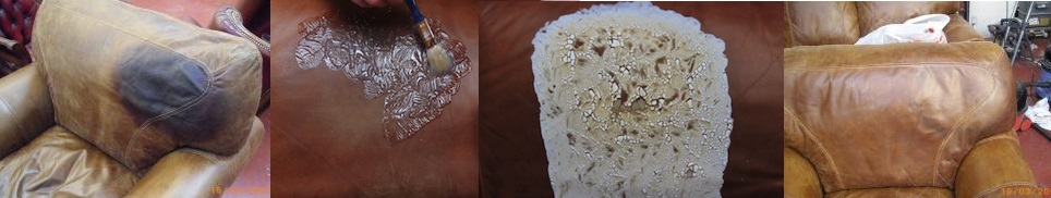 2. Pensla på avfettningsmedlet på fettfläcken låt torka i ca 30 minuter. När det torkar kommer medlet att absorbera fettet i lädret, och det bildas ett pulver, som är gult/brunt där fettet är absorberat och vitt runtomkring.