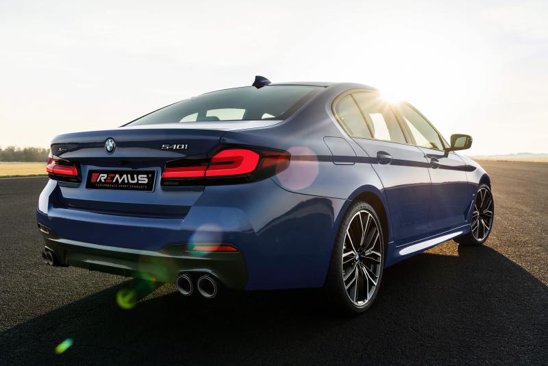 Sport exhaust centered (absorption principle)with integrated valveOriginal tube Dia: 85 mm, REMUS tube Dia: 85 mm incl. mounting material Installation/fitting at the serial mounting points incl. EC type approval Only suitable for models with M sport option and in combination with the original rear diffuser of the BMW G30 550i (BMW original part no. 51 12 8 098 701)! The activation of the valve is carried out using the original actuator via the vehicle onboard electronics.