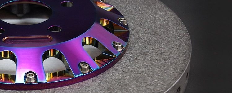 Centrum på skivan är gjort i aluminium 6061, denna är CNC fräst men unika profiler för att skapa en så lätt och start produkt som möjligt. Slutfinishen är "titanium" coating, till och med skruvarna är titanium för att hålla så lätt vikt som möjligt.