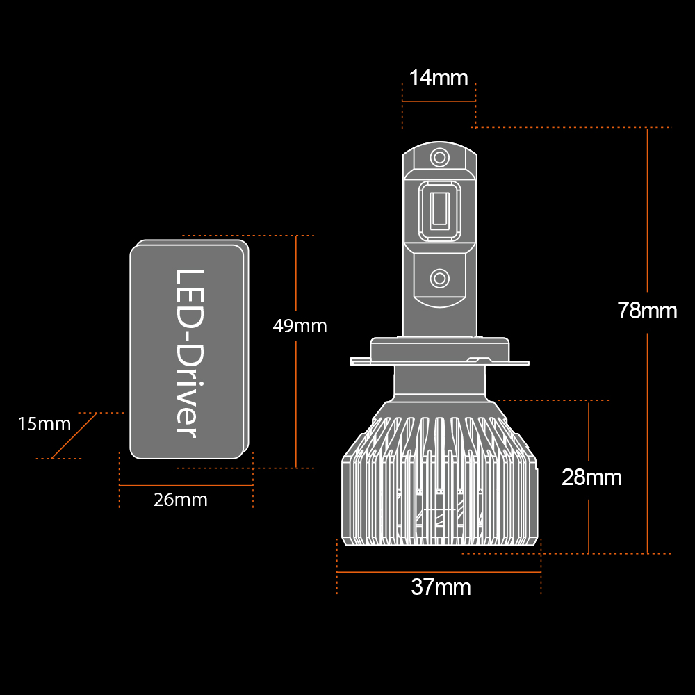 Kraftigt LED-Chip, som ger prestanda högre än vad en Xenonlampa gör. Vanligtvis ligger en bra Xenonlampa på ca 3200 lumen, medans denna lampan lyser med hela 3400 lumen.