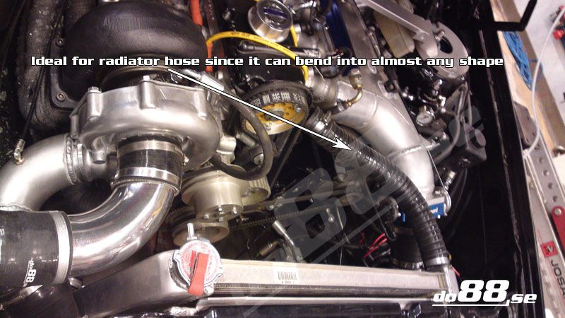 Jämfört med vanlig silikonslang så är denna flexibla slang tillverkad med en invävd stålspiral i armeringen. Detta ger slangen utmärkt flexibilitet och högt sprängtryck. Slangens utsida är inte slät som på en vanlig silikonslang, den har ett spår i ytan som går som en spiral längs hela slangen. Detta spår hjälper slangen att lättare böjas.