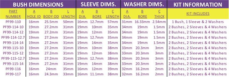 Universal Bushes Parallel Bushes SPECIAL Cylinderical Bush with Stainless Steel Inner Sleeve
