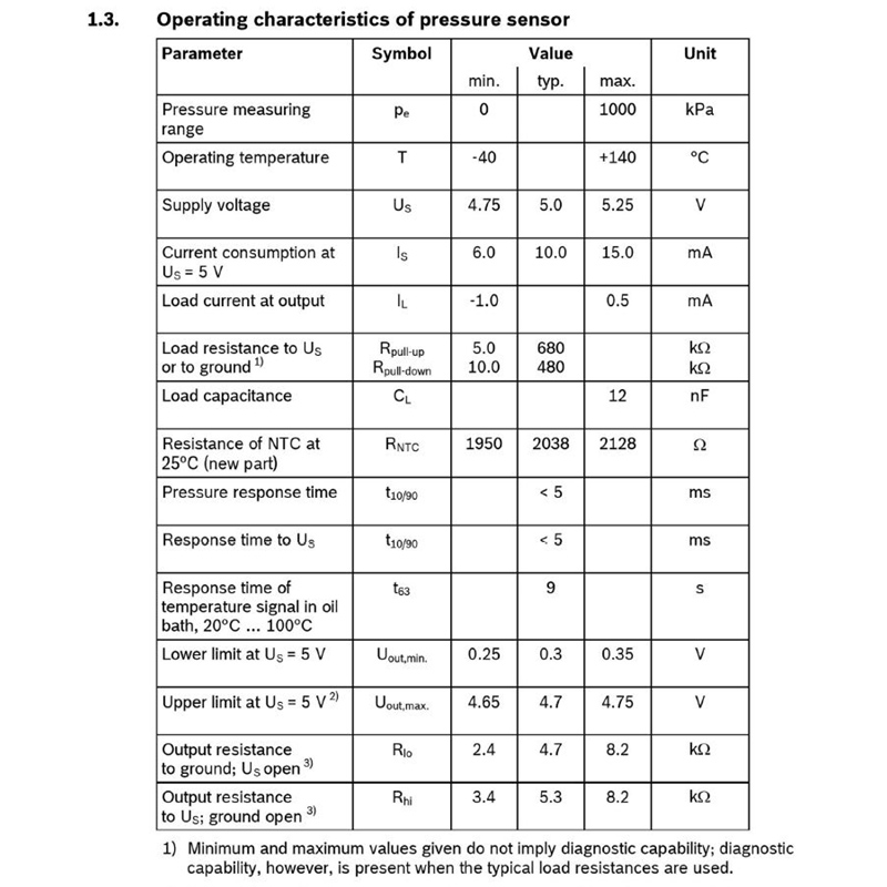 10 BAR (150 PSI) Bosch bränsle-/oljetryck-/temperatursensor, M10x1