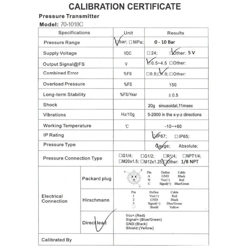 10 BAR (150 PSI) bränsle-/oljetryckssensor, 1/8 NPT, med 1m (3ft) kabel