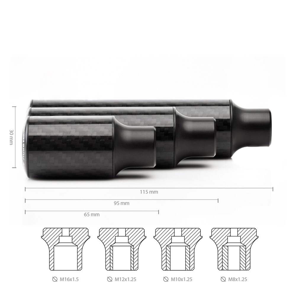 Nuke Performance universala växelspaksknoppar finns i tre olika storlekar och två olika finish!