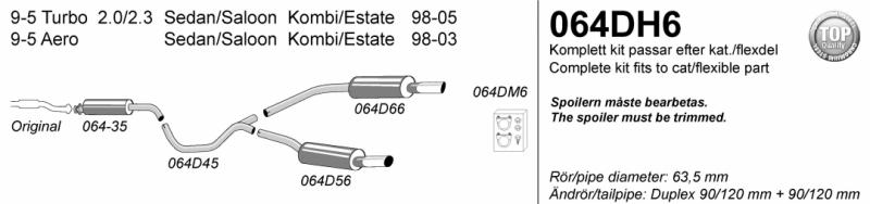 Avgassystem Saab 9-5 Turbo 2.0/2.3 Sedan/Kombi år 1998-2005 9-5 Aero Sedan/Kombi år 1998-2003