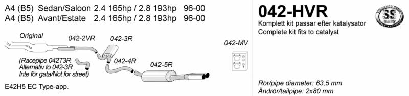 Avgassystem Audi A4 6-cyl 94- 2*80
