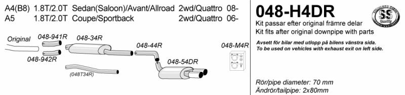 Simons® sportavgassystem Audi A4/A5 1.8/2.0 2*80
