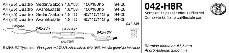 Avgassystem Audi A4 Quat 4-cyl 2*80