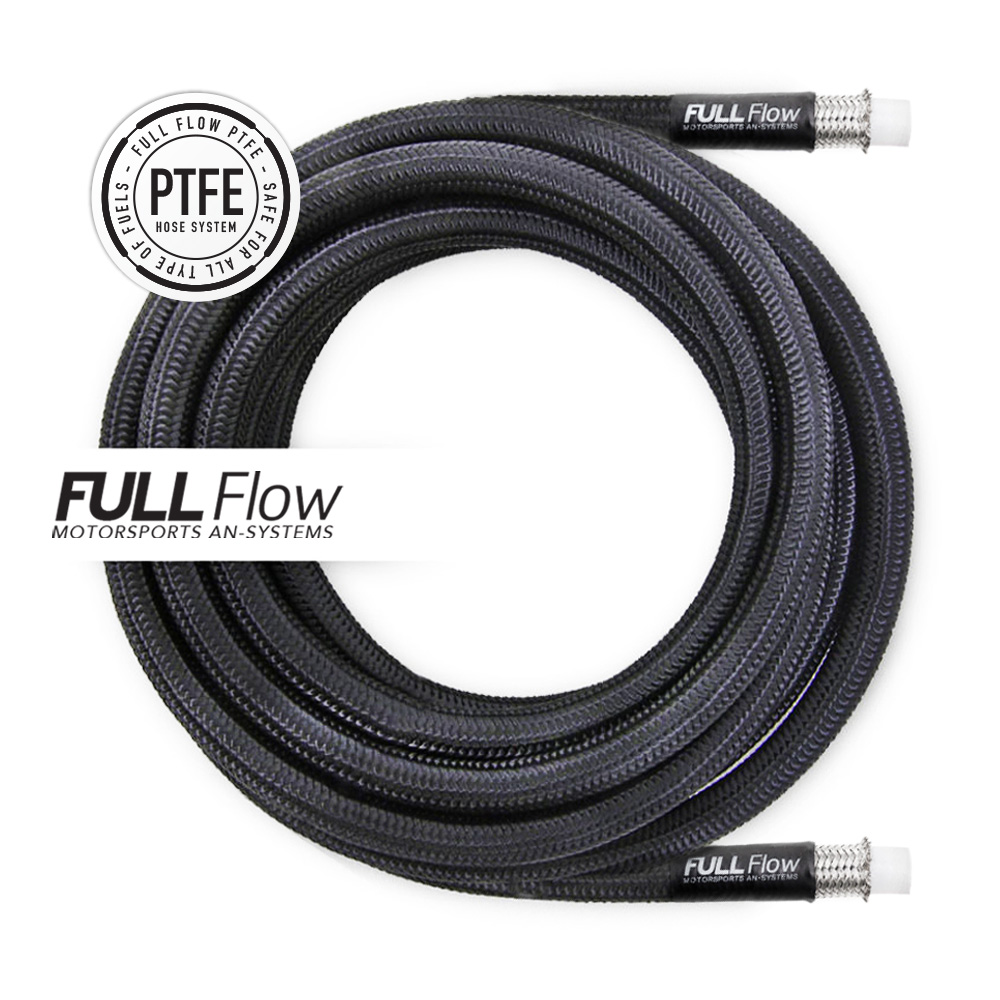 Svart nylonomspunnen PTFE bränsleslang AN-6, Längd 6m