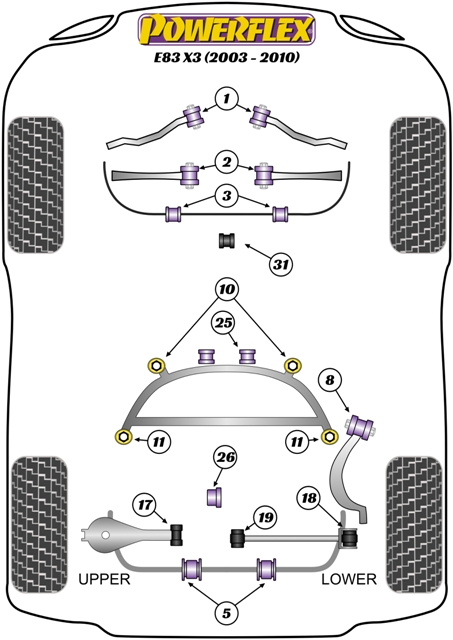 POWERFLEX polyuretanbussningar förbättrar din bils väghållning och minskar oönskat flex i chassit. Byter du till powerflex bussningar så flyttar du denna flex ifrån dina original gummibussningar till stötdämparna som kan kontrollera denna rörelse. Detta innebär att bilen hjulupphängning får bättre förutsättningar att göra det den är tilltänkt att göra samt att hålla bilens däck i maximalt kontakt med vägen. Detta ger bättre vägegenskaper, en säkrare bil samt bättre ekonomi.