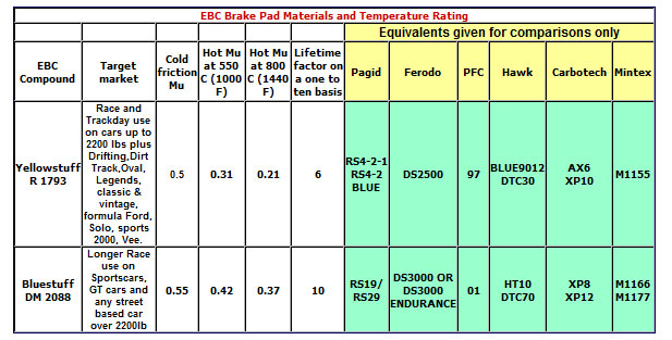 Högpresterande bromsbelägg för mycket hård gatkörning och trackdays. EBC Bluestuff har ihop med EBC RP-X högst friction coefficient 0,52 Mu (NDX blandningen).