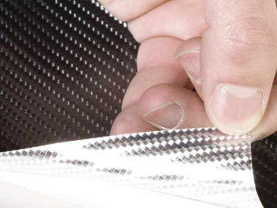 Dekorationsfilm i kolfiber look för att klä tex. paneler och dyl. 48X60cm. Mycket lik riktig kolfiber. 3D struktur i filmen. Filmen är värmebeständig.