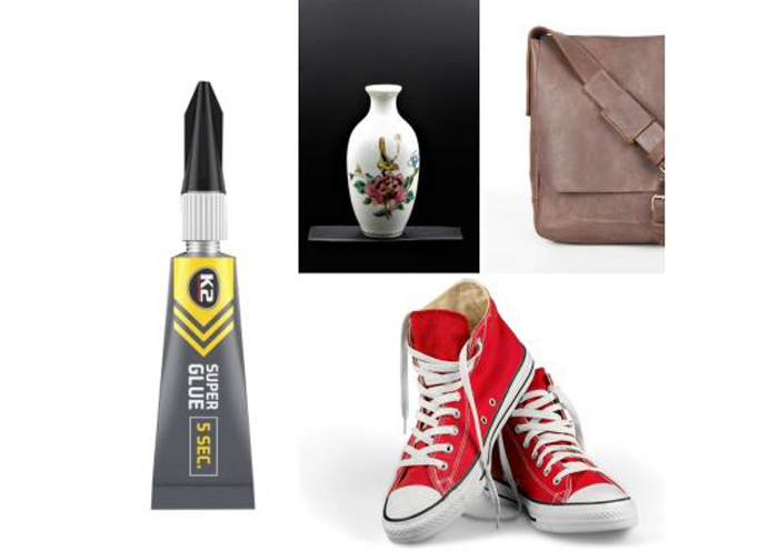 Limmar: plast, metall, trä, läder, gummi, keramik, papper, glas mm