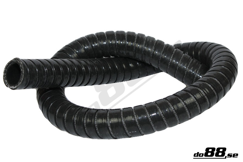 Jämfört med vanlig silikonslang så är denna flexibla slang tillverkad med en invävd stålspiral i armeringen. Detta ger slangen utmärkt flexibilitet och högt sprängtryck. Slangens utsida är inte slät som på en vanlig silikonslang, den har ett spår i ytan som går som en spiral längs hela slangen. Detta spår hjälper slangen att lättare böjas.